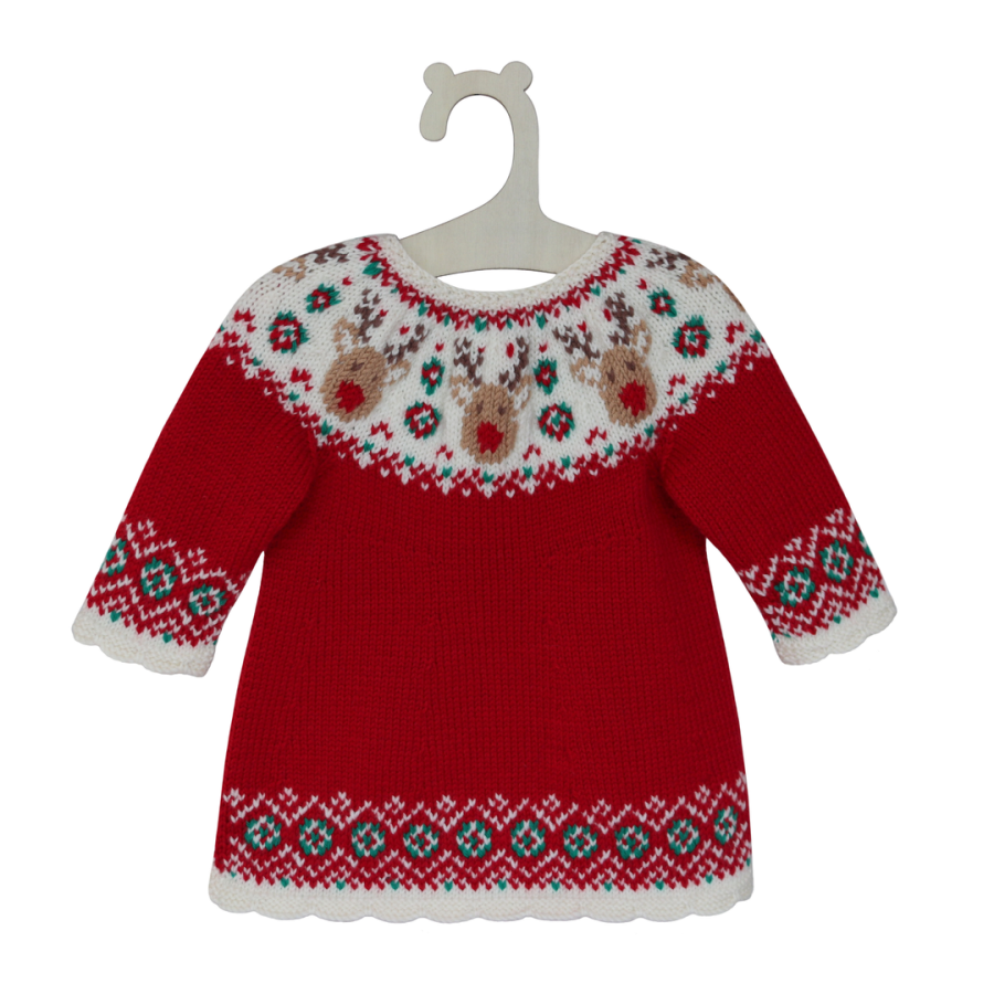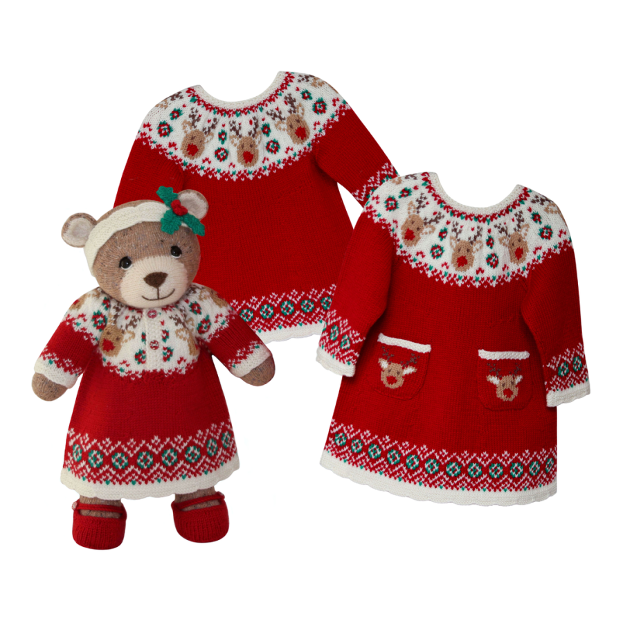 This festive pattern is designed for babies aged 0-12 months, with sizes ranging from 0-3, 3-6, 6-9 and 9-12 months, so you can find the perfect fit. But best of all, the pattern includes instructions to make a matching dress for your baby's favourite teddy. Perfect for holiday photos and creating a festive keepsake to be treasured for years to come.