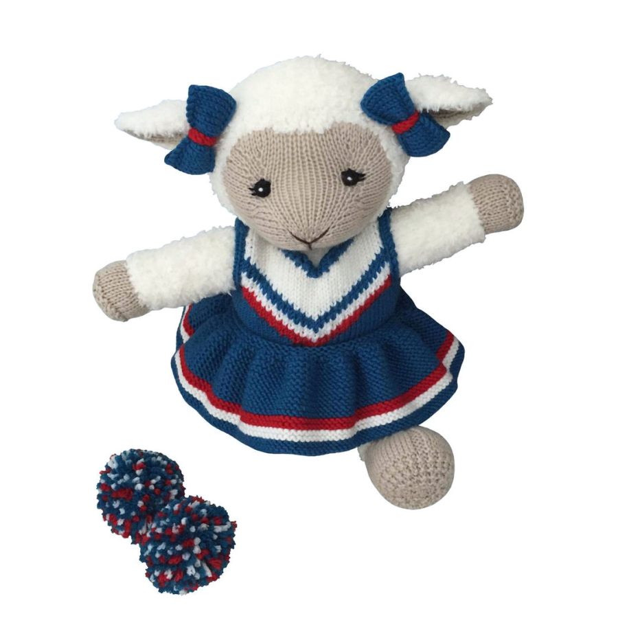 This 11 page pattern has clear row by row instructions and lots of photographs and video tutorials to help you along the way. The pattern includes a top, a skirt, some briefs, cheer shoes, bows and pom poms.