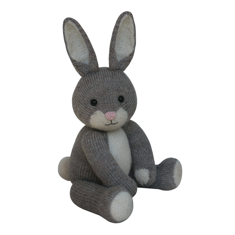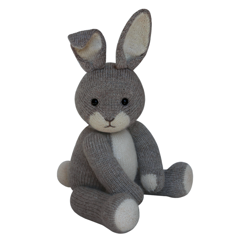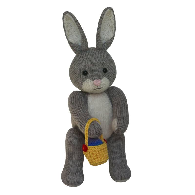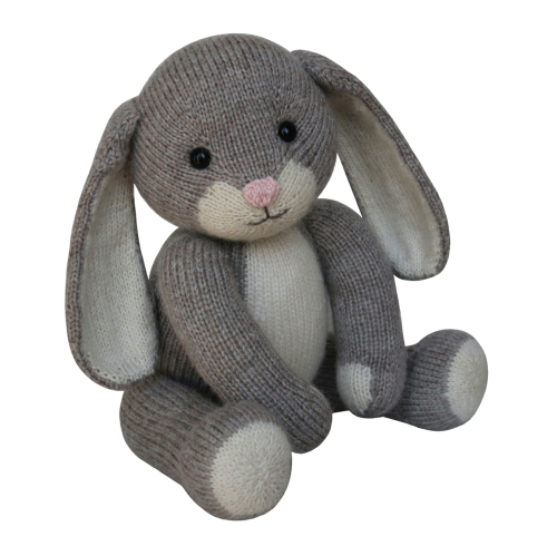 This 15 page pattern has clear row by row instructions and lots of photographs and video tutorials to help you along the way. The teddy can be made with or without toy safety joints and instructions are given for both. The bunny can be made with lop or upright ears. You will need to be able to knit, purl, cast on and off, increase and decrease, change colours and sew seams.