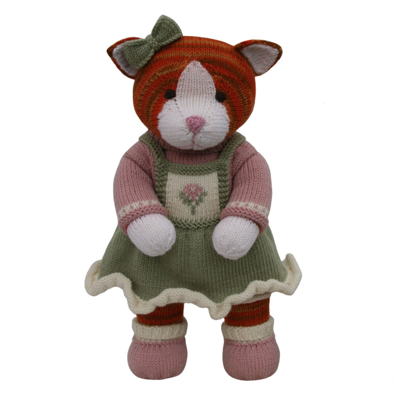 This 12 page pattern has clear row by row instructions and lots of photographs and video tutorials to help you along the way. The teddy can be made with or without toy safety joints and instructions are given for both. You will need to be able to knit, purl, cast on and off, increase and decrease, change colours and sew seams.