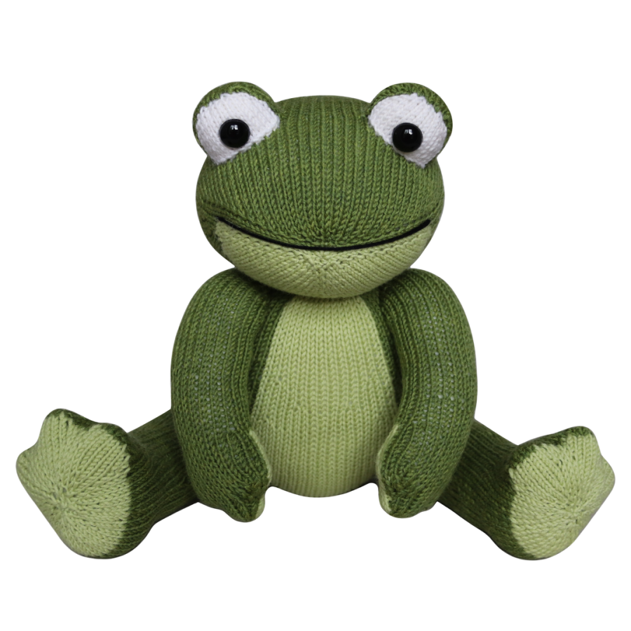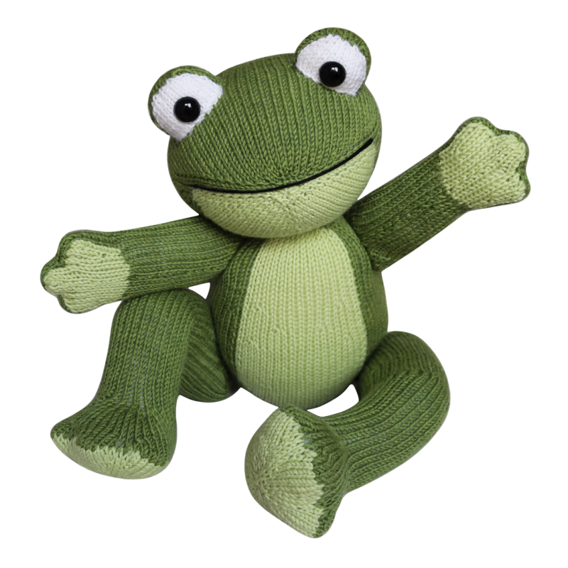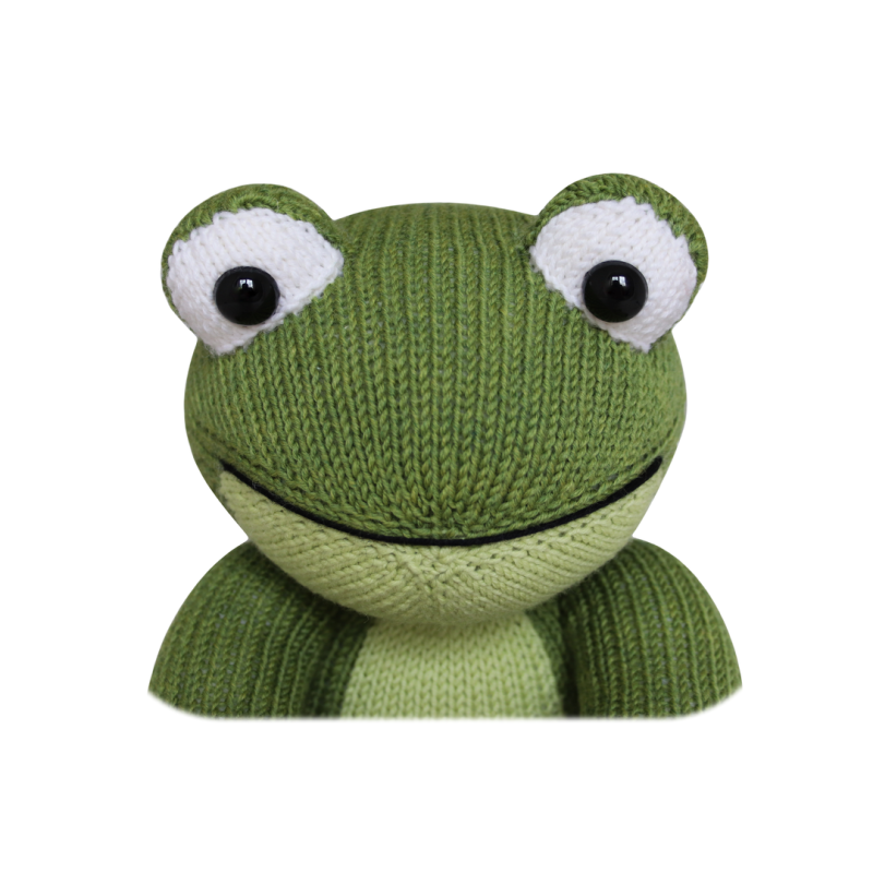 This 14 page pattern has clear row by row instructions and lots of photographs and video tutorials to help you along the way. You will need to be able to knit, purl, cast on and off, increase and decrease, change colours and sew seams. The frog can be made with short legs (to fit Knit a Teddy outfits) or long legs.